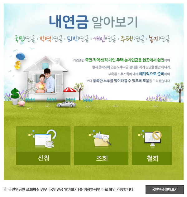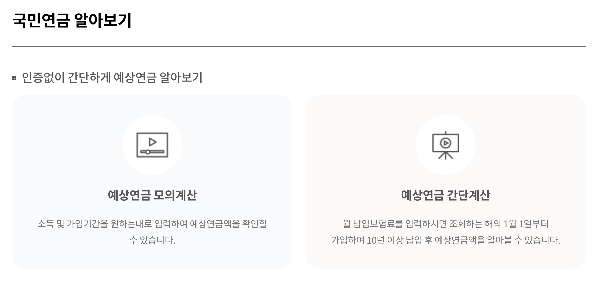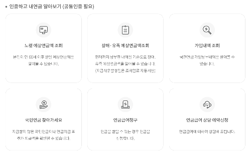 공인인증서 또는 공동인증서를 통해 로그인한 후 ‘내 연금 알아보기’ 서비스를 이용하면 예상 연금액을 확인할 수 있습니다.