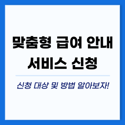 맞춤형 급여 안내 서비스는 복잡한 정부 지원 정보를 쉽게 확인하고 신청할 수 있도록 도와주는 유용한 서비스입니다.